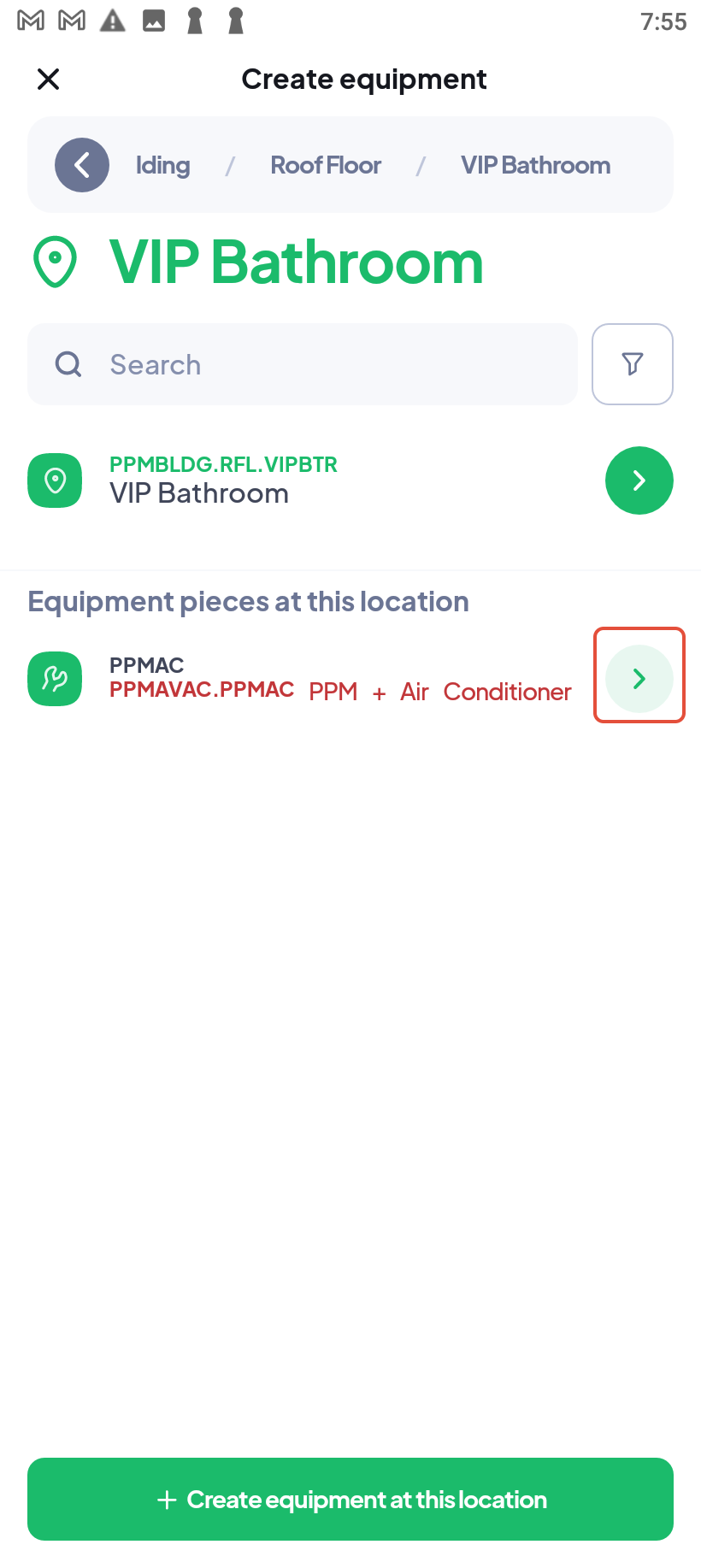 3. Browse for the location where the equipment is and tap on the Equipment Arrow Button