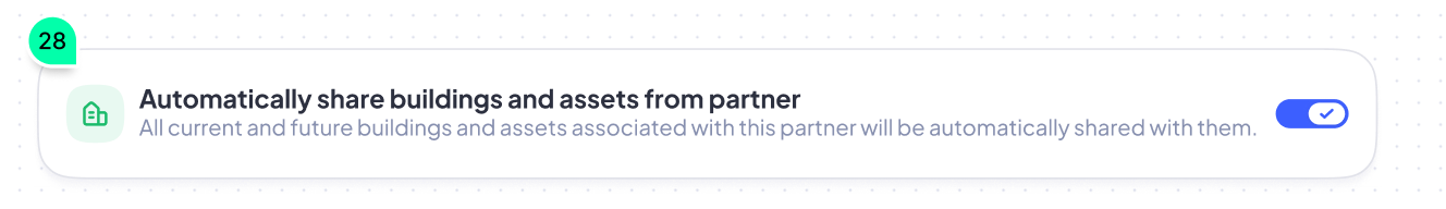 Note: On this screen, you’ll see an option to automatically share buildings and assets associated with that partner. By default it’s toggled ON. Here, you have two options: 1. Leave it ON, and automatically share buildings and assets with this partner. 2. Toggle it OFF and customize your sharing preferences. If you leave it ON, just press the Create rule and share button on the bottom-right corner. All of your buildings, locations and equipment will be shared with this client from here on! If you toggled it OFF, proceed to the next step.