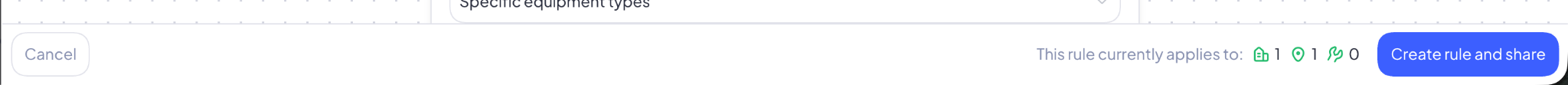5. After you’ve completed your selection of specific buildings, locations and equipment types, look to the footer of this screen. You can cancel the progress you’ve made so far, or you can press Create rule and share so that you can now automatically share assets with your client.