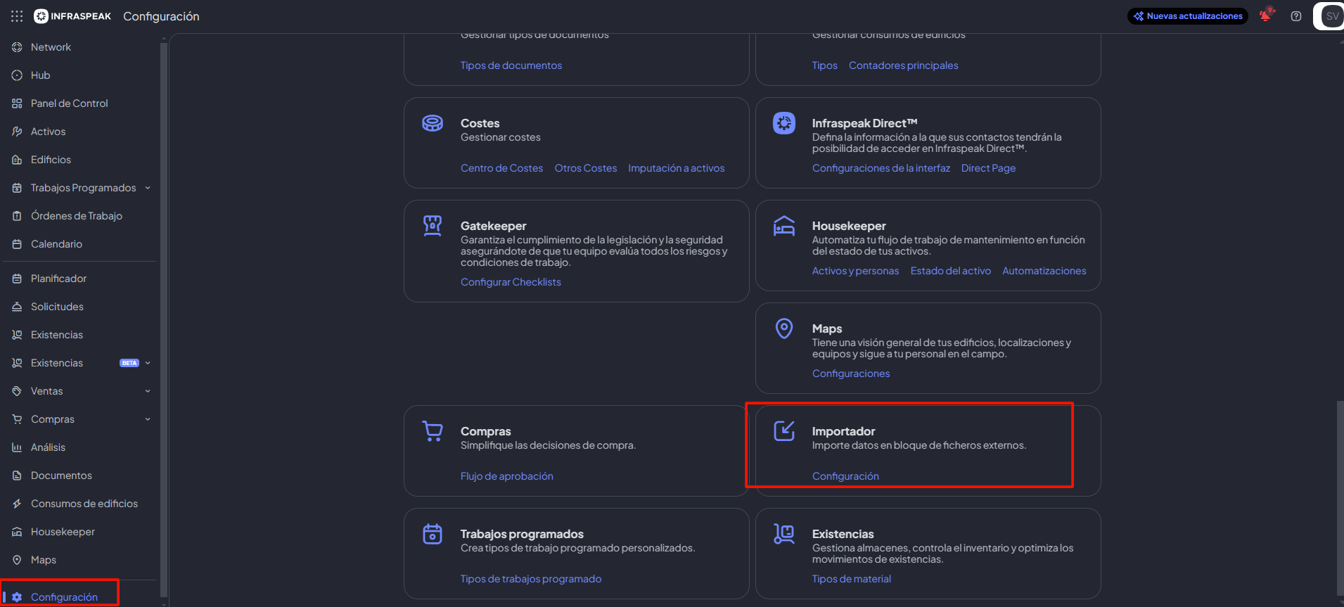 - Una vez que esté todo listo, dirígete a la sección "Importador" que está disponible en la sección de las configuraciones: