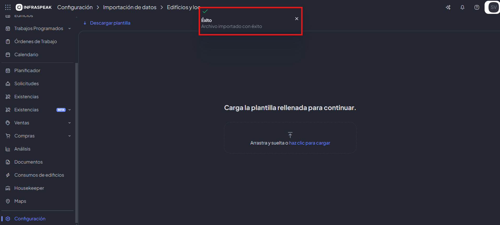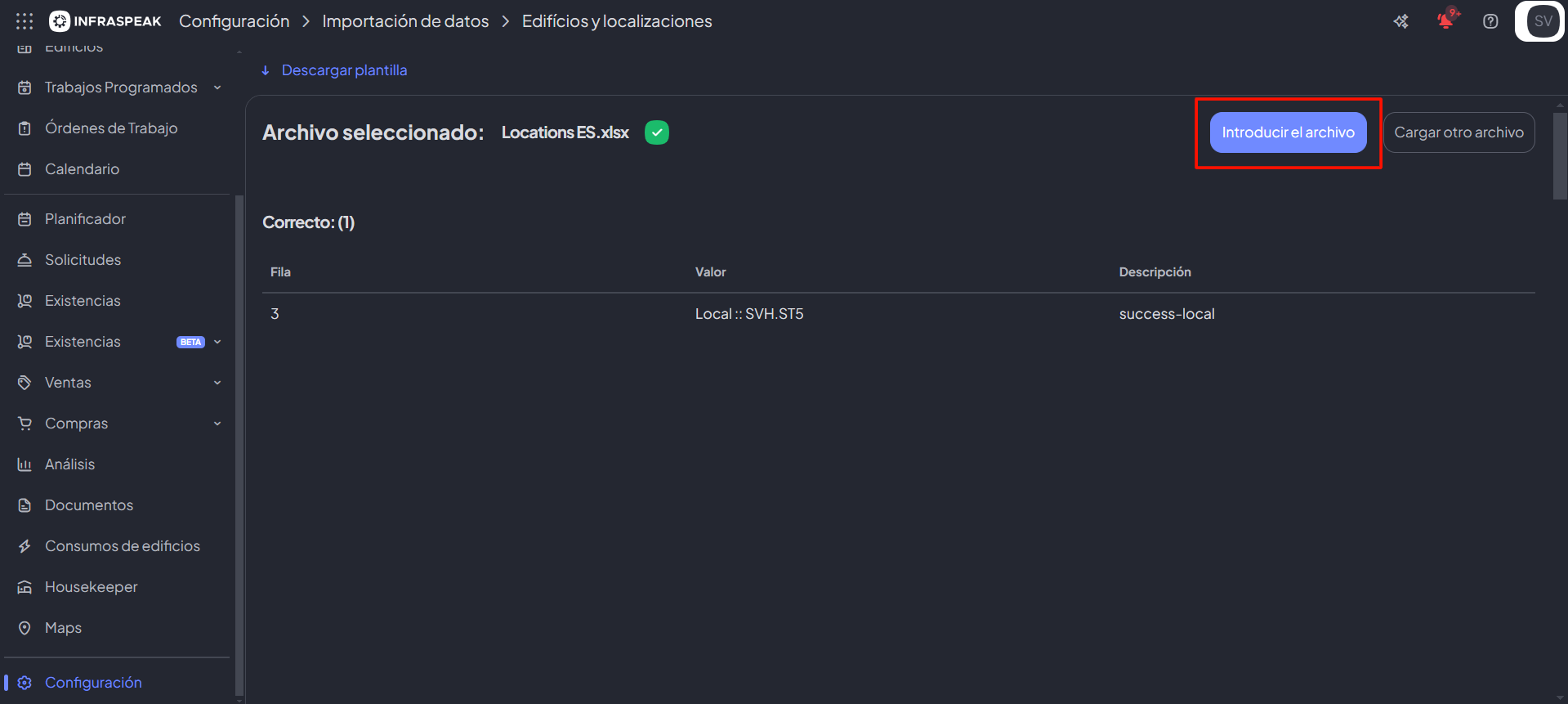 - El último paso será hacer clic en el botón "Introducir el archivo". ¡Posteriormente, aparecerá un nuevo mensaje de éxito y el proceso estará terminado!