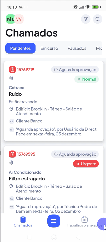 - Pausar / Continuar - Ao longo do fluxo, o chamado pode ser pausado devido á vários motivos e retomado assim que o motivo de pausa for solucionado