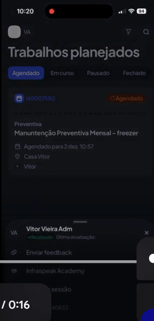 - No aplicativo móvel Infraspeak Next, carregue na aba "Comentários & Sugestões"