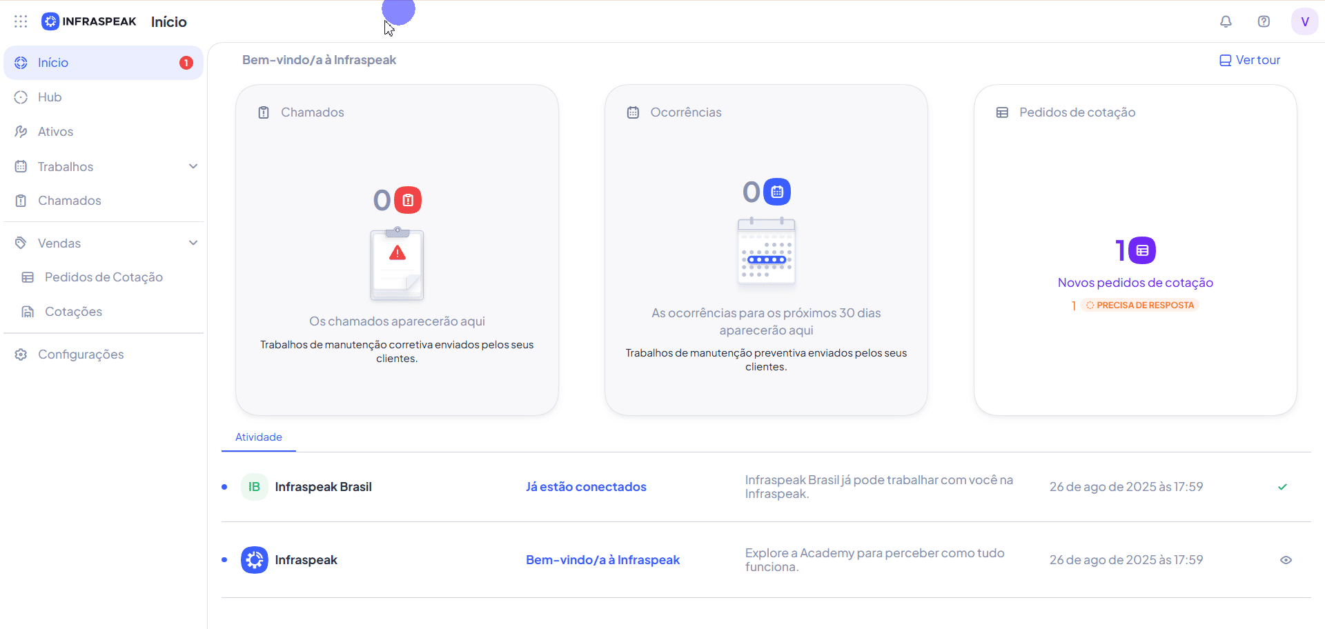 - Abra o Infraspeak Network com sua conta de fornecedor.