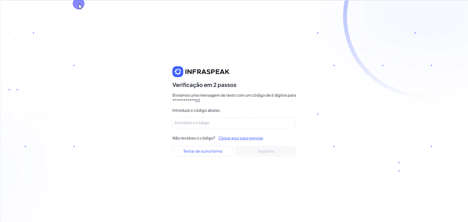 - Insira o código de verificação gerado pelo seu aplicativo de autenticação ou recebido por mensagem de texto.