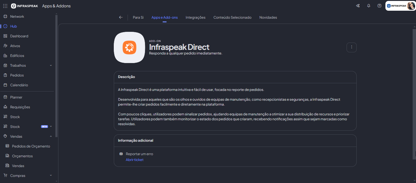 Uma vez reportado, o chamado será criado e ficará visível na sua Infraspeak, como de costume.