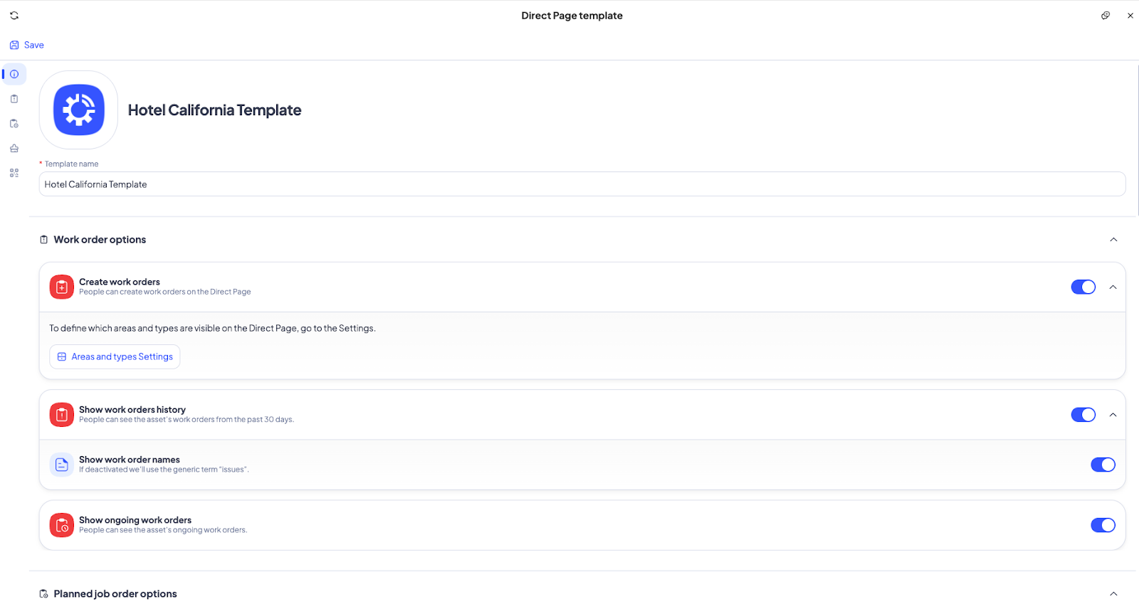 - Acesse as configurações da Direct Page para personalizar os seguintes recursos: