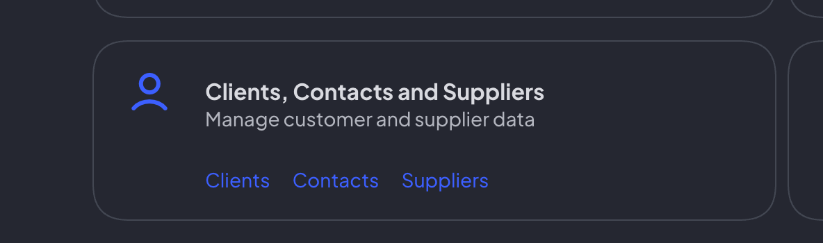 2. Role para baixo até ver Clientes, Contatos e Fornecedores. Clique em Clientes.