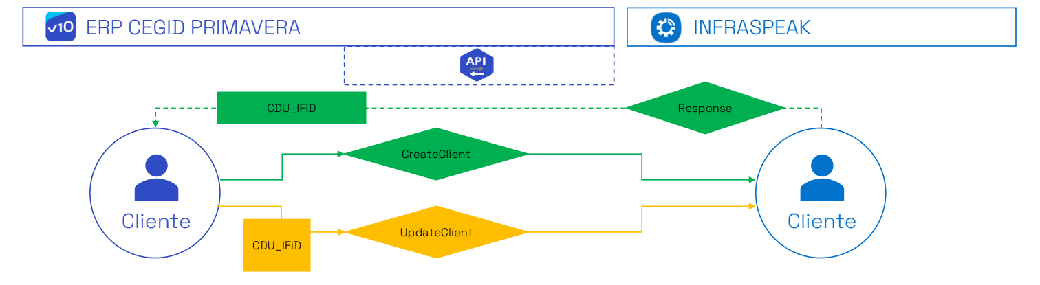 Os dados de clientes criados ou atualizados no CEGID PRIMAVERA são sincronizados automaticamente com a Infraspeak. Isto garante uma fonte de informação única e fiável em todas as plataformas, reduzindo o trabalho manual e eliminando inconsistências. Detalhes fundamentais dos clientes, tais como identificação, morada e dados de referência, permanecem alinhados em tempo real.
